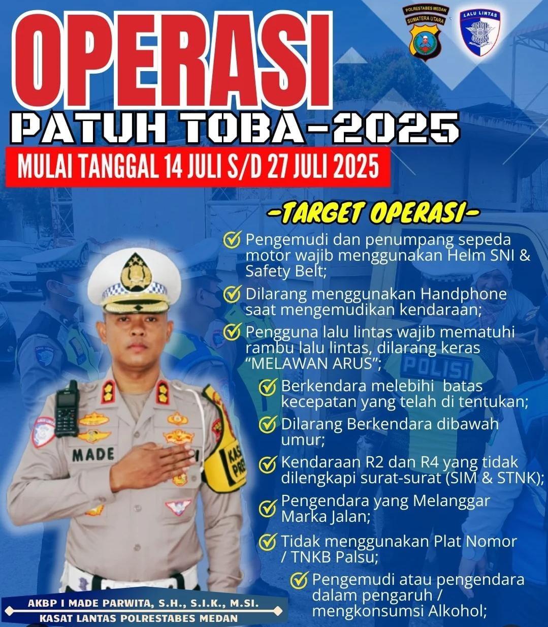 Update24News.id, Sumut – Mulai besok, Senin 14 Juli 2025, Kepolisian Negara Republik Indonesia melalui Satuan Lalulintas (Satlantas) akan melaksanakan Operasi Patuh (Razia) secara serentak di seluruh Indonesia.