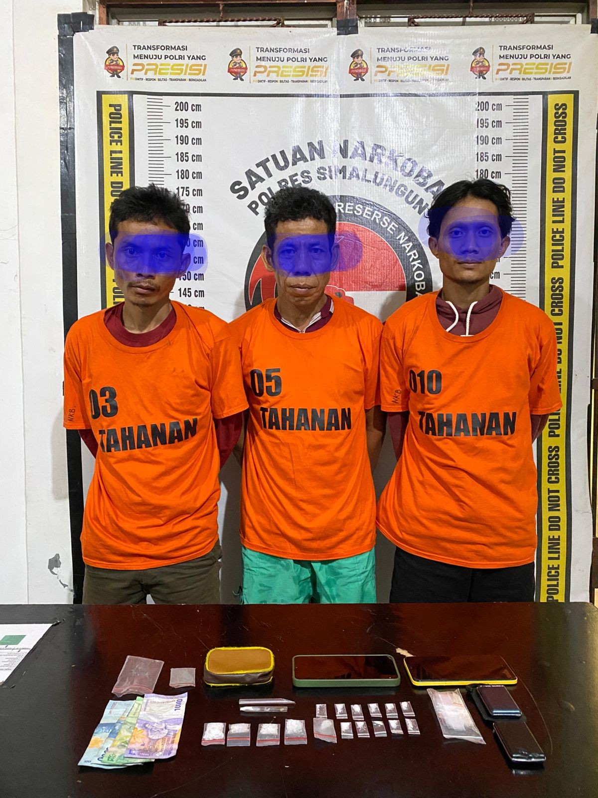Tim dari Polsek Perdagangan tidak membuang waktu dan segera meluncur ke lokasi yang dimaksud. Setibanya di tempat kejadian, petugas melakukan penggrebekan mendadak dan berhasil menggulung tiga orang laki-laki yang berada di dalam kamar rumah SYAHRIZAL. Saat penggrebekan, ketiga tersangka sedang dalam kondisi mengonsumsi narkoba jenis sabu menggunakan alat bong.