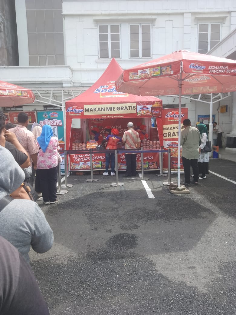 Wings Group, perusahaan di balik merek Mie Sedaap, membagikan mie instan gratis kepada warga yang mengurus pajak kendaraan di Samsat Medan Selatan,Jumat (09/01/2026).
