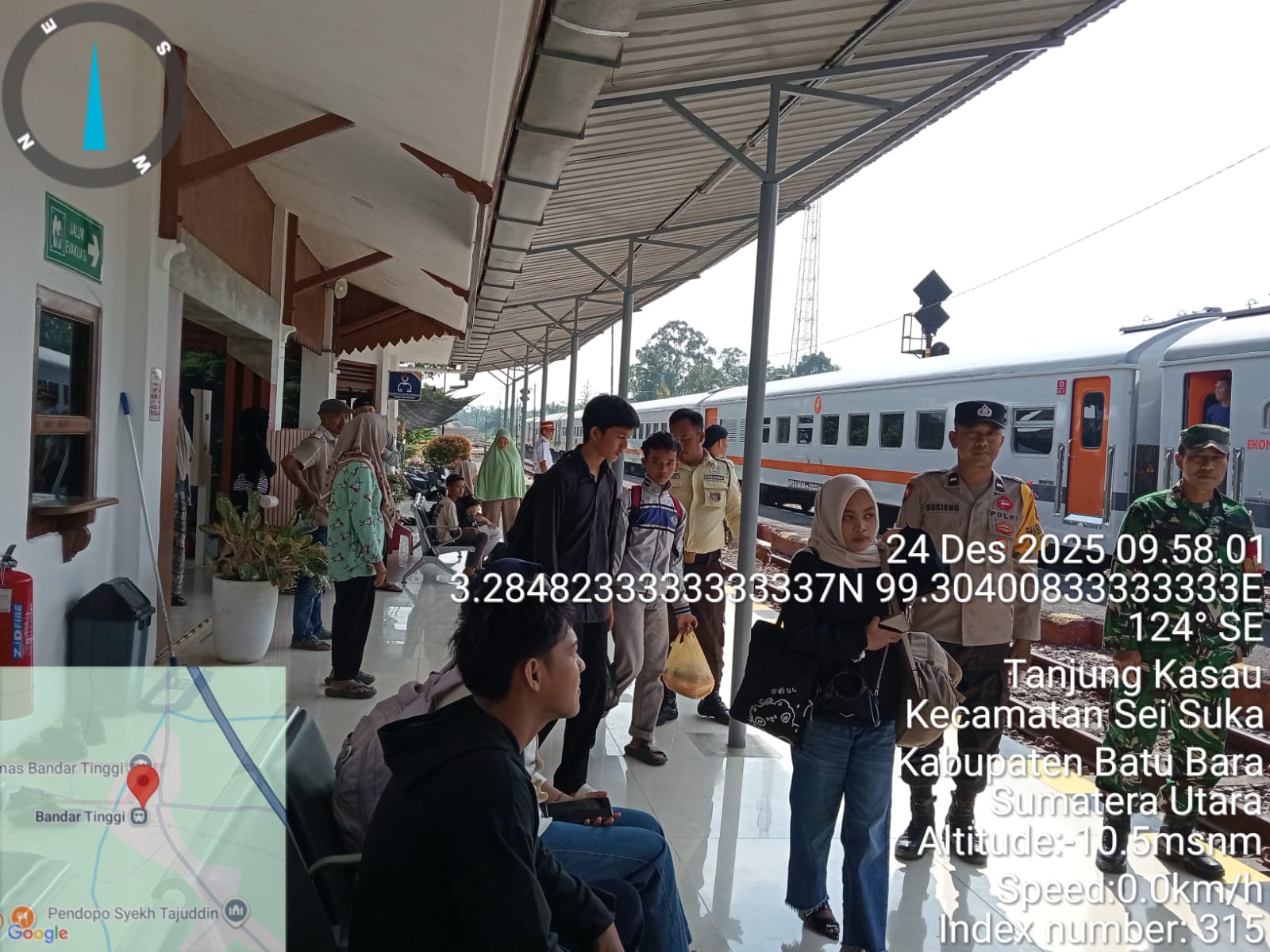 SIMALUNGUN,Update24News.id – Menjelang libur Natal dan Tahun Baru 2025, jajaran Polsek Perdagangan, Polres Simalungun, Polda Sumatera Utara, terus meningkatkan upaya pengamanan di titik-titik transportasi publik. Salah satunya dilakukan melalui patroli dialogis dan pengamanan angkutan Nataru di Stasiun Kereta Api Bandar Tinggi, Nagori Bandar Tinggi, Kecamatan Bandar Masilam, Kabupaten Simalungun.