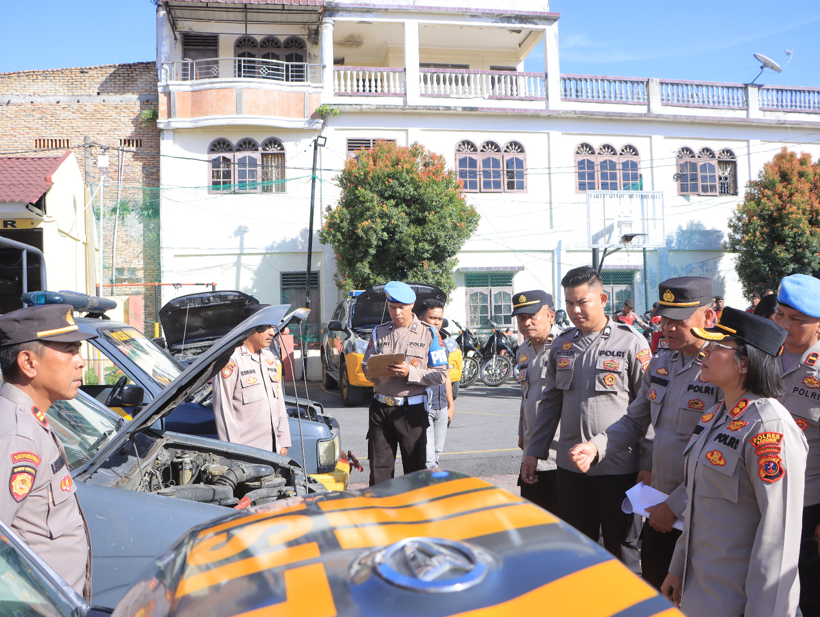Pemeriksaan meliputi kelengkapan administrasi kendaraan seperti STNK dan SIM dinas, kondisi mesin, sistem pengereman, lampu, ban, sirene, serta kebersihan dan perawatan kendaraan. Selain itu, Kapolres juga menegaskan kesesuaian penggunaan kendaraan dinas dengan peruntukannya serta memberikan arahan terkait kewajiban perawatan dan larangan penyalahgunaan kendaraan dinas.