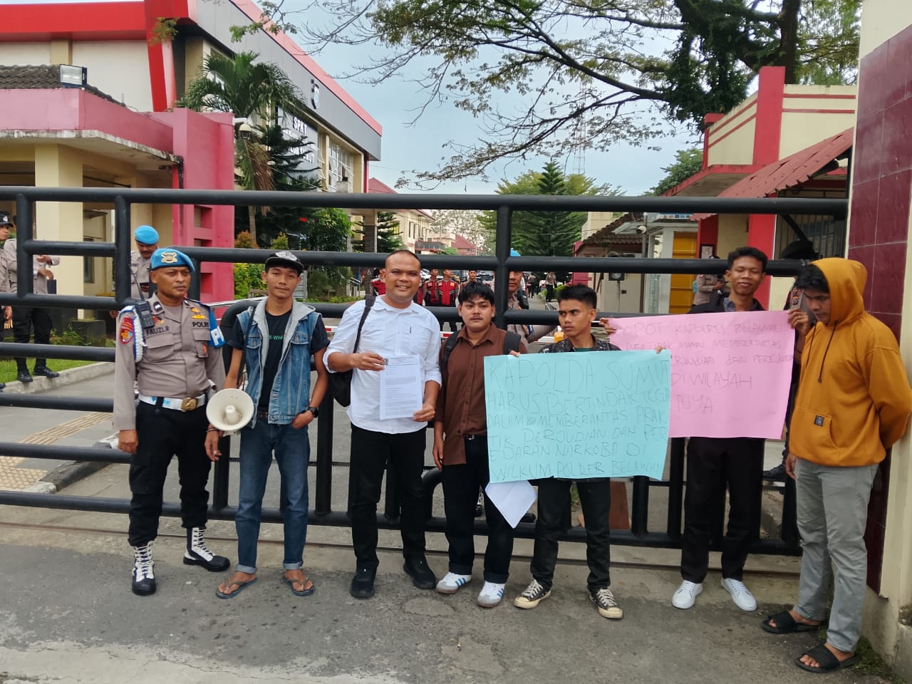 Menanggapi aksi demo perwakilan dari polda sumatera utara mengatakan akan menyampaikan tuntutan mahasiswa tersebut kepada pimpinan.
