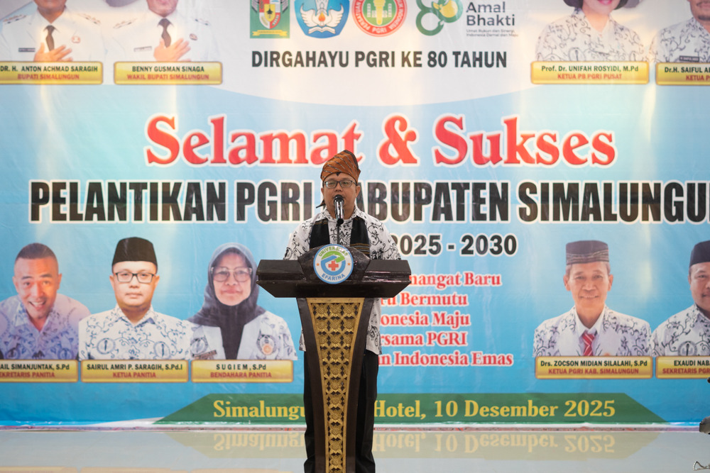 Sungguhlah indah Para Guru Negeri ini kalau bergabung di PGRI. Demikian pantun Yang disampaikan Ketua Panitia, HUT PGRI Ke-80 Kabupaten Simalungun.