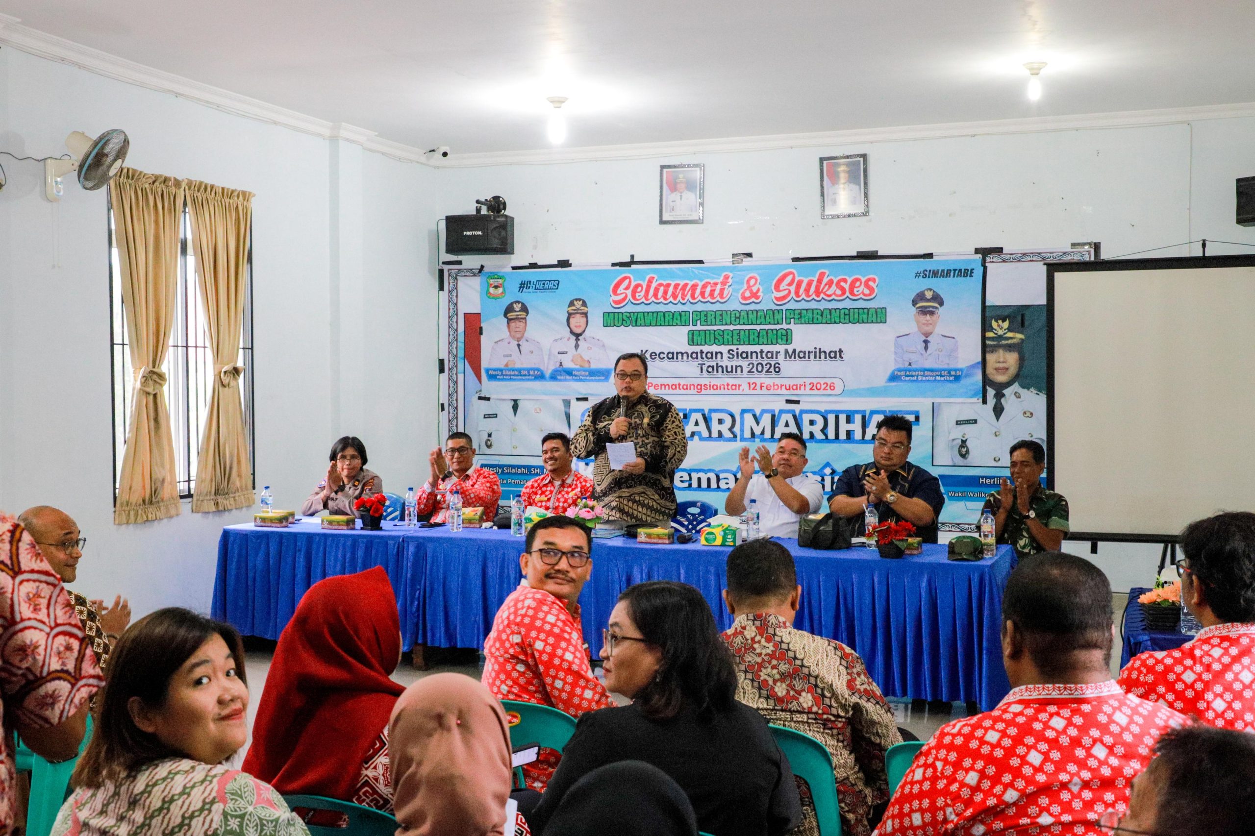 Sebelumnya, Camat Siantar Marihat, Pedi Arianto Sitopu, SE., M.Si, dalam laporannya menyampaikan, musrenbang di tingkat kecamatan telah melalui tahapan rembug warga yang dilaksanakan 20-23 Januari 2026, dan musrenbang kelurahan pada 27-30 Januari 2026.