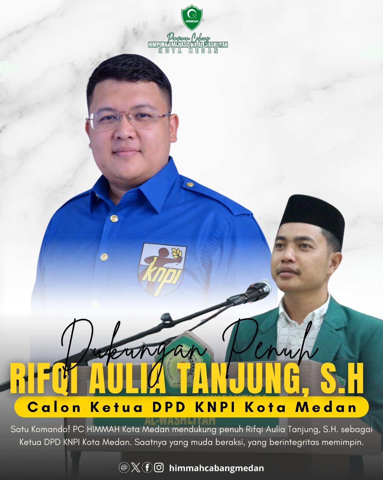 MEDAN,Update24News.id – Menjelang Musyawarah Daerah (MUSDA) DPD KNPI Kota Medan ke-15, Pimpinan Cabang Himpunan Mahasiswa Al Washliyah (PC HIMMAH) Kota Medan secara resmi menyatakan sikap politiknya. Organisasi mahasiswa berbasis intelektual religius ini melabuhkan dukungan penuh kepada Rifqi Aulia Tanjung, S.H. untuk menjabat sebagai Ketua DPD KNPI Kota Medan periode 2025-2028.