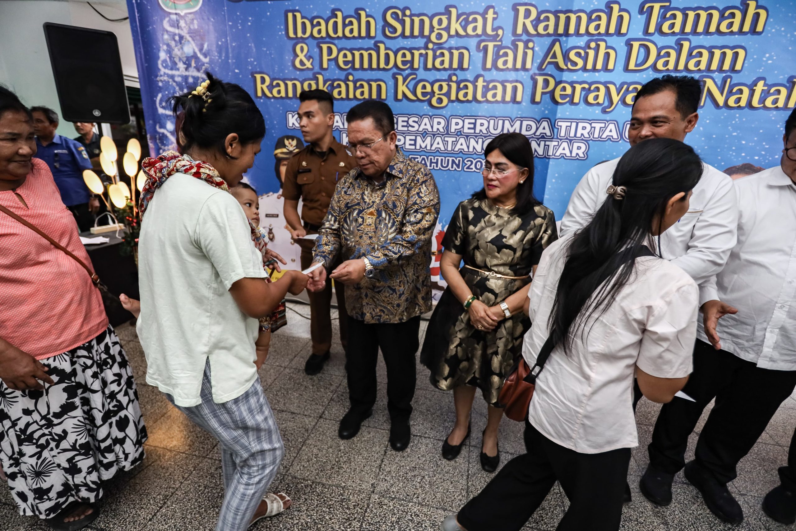 Siantar,Update24News.id – Wali Kota Pematangsiantar Wesly Silalahi SH MKn didampingi Ketua TP PKK Ny Liswati Wesly Silalahi menyerahkan tali asih kepada jemaat gereja. Penyerahan tali asih tersebut sebagai bentuk kepedulian dan kasih sayang kepada masyarakat, khususnya jemaat gereja dalam rangkaian Perayaan Natal Keluarga Besar Perusahaan Umum Daerah (Perumda) Air Minum Tirta Uli Kota Pematangsiantar. Penyerahan tali asih dilaksanakan di rumah dinas wali kota, Jalan MH Sitorus Kelurahan Teladan Kecamatan Siantar Barat, Selasa (02/12/2025).