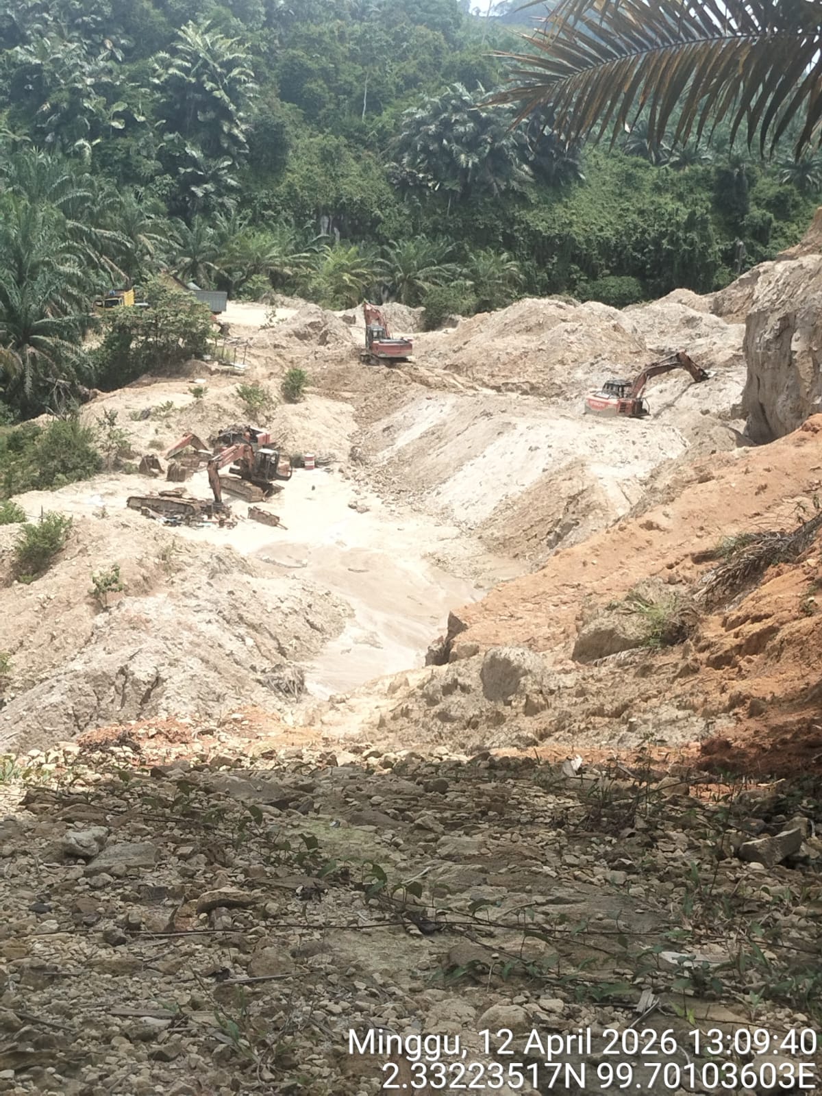 Temuan ini bermula dari investigasi lapangan yang dilakukan tim media online Jelajahperkara pada 12 April 2026. Berdasarkan hasil pantauan di lokasi, ditemukan adanya aktivitas pertambangan yang diduga tidak memiliki izin resmi dan berpotensi melanggar hukum serta merusak lingkungan sekitar.