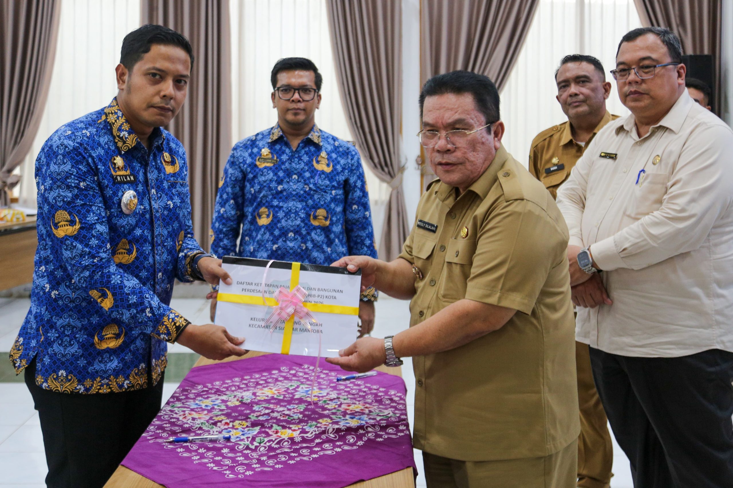 PEMATANGSIANTAR | Update24News.id – Wali Kota Pematangsiantar, Wesly Silalahi, menyerahkan Daftar Ketetapan Pajak (DKP) dan Surat Pemberitahuan Pajak Terutang (SPPT) Pajak Bumi dan Bangunan Perdesaan dan Perkotaan (PBB P-2) Tahun 2026 kepada delapan camat se-Kota Pematangsiantar. Kegiatan berlangsung di Ruang Serbaguna Setdako Pematangsiantar, Senin (27/04/2026) siang.