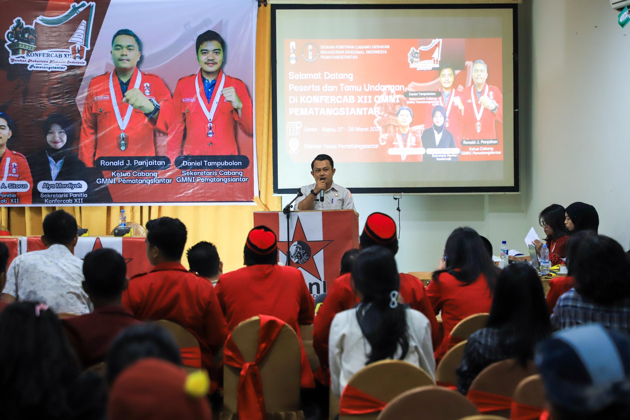 Harapan tersebut disampaikan Wali Kota Pematangsiantar, Wesly Silalahi, S.H., M.Kn, dalam sambutan tertulisnya yang dibacakan Plt Asisten Pemerintahan dan Kesejahteraan Rakyat (Kesra) Sekretariat Daerah Kota Pematangsiantar, Hendra TP Simamora, S.STP., M.Si, saat menghadiri Pembukaan Konfercab XII GMNI Kota Pematangsiantar, di Siantar Hotel Jalan WR Supratman Kelurahan Proklamasi Kecamatan Siantar Barat, Jumat (27/03/2026) sore. Konfercab berlangsung selama dua hari hingga Sabtu (28/03/2026).