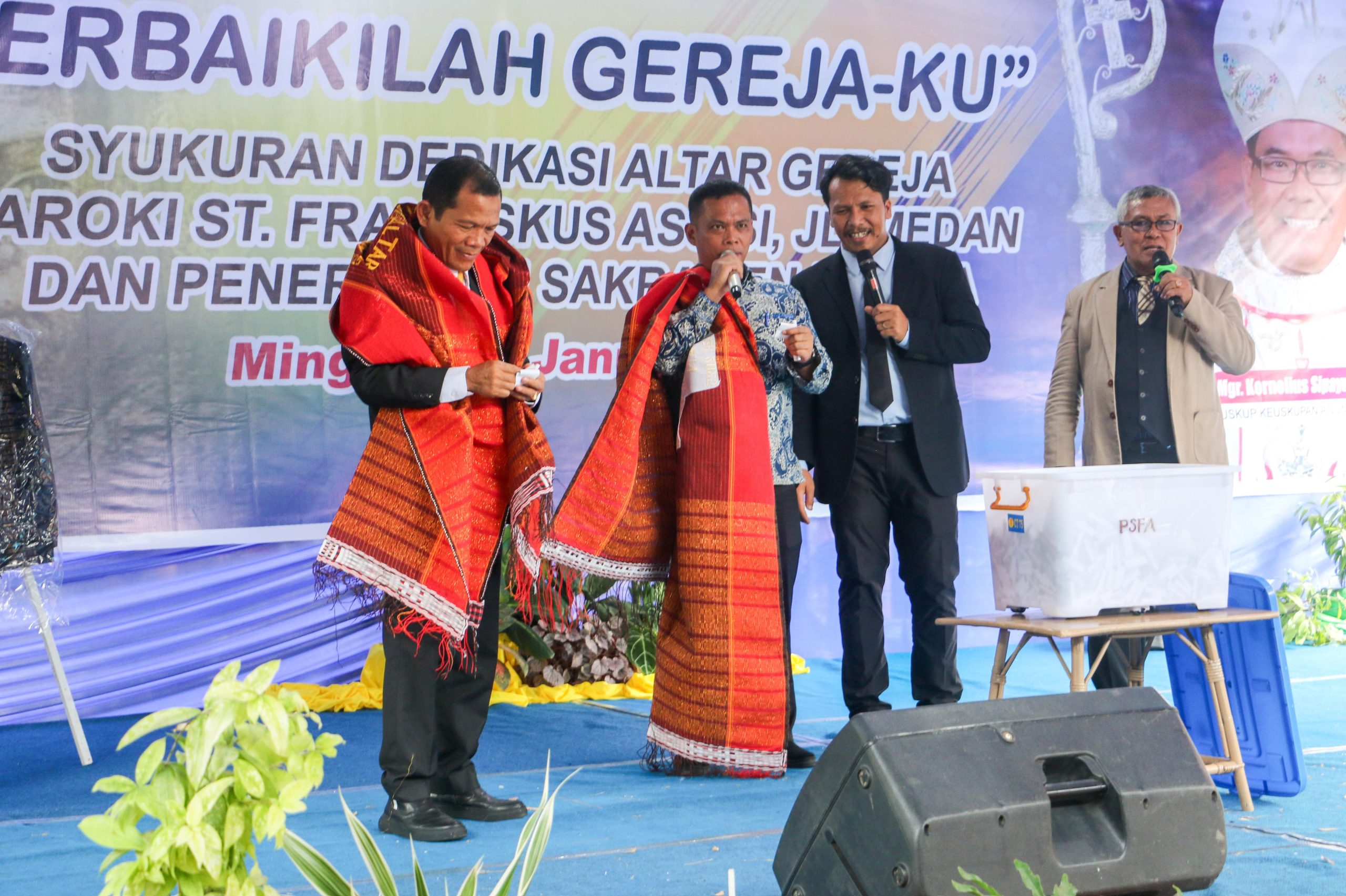 Wesly dalam sambutan tertulisnya yang dibacakan Junaedi, menyatakan atas nama Pemerintah Kota (Pemko) Pematangsiantar mengucapkan selamat dan menyampaikan apresiasi kepada seluruh umat, panitia, serta para donatur yang telah bekerja keras, bergotong royong, dan berkontribusi dengan penuh ketulusan, sehingga Altar Gereja ini dapat didedikasikan dan digunakan secara layak sebagai pusat peribadatan umat.